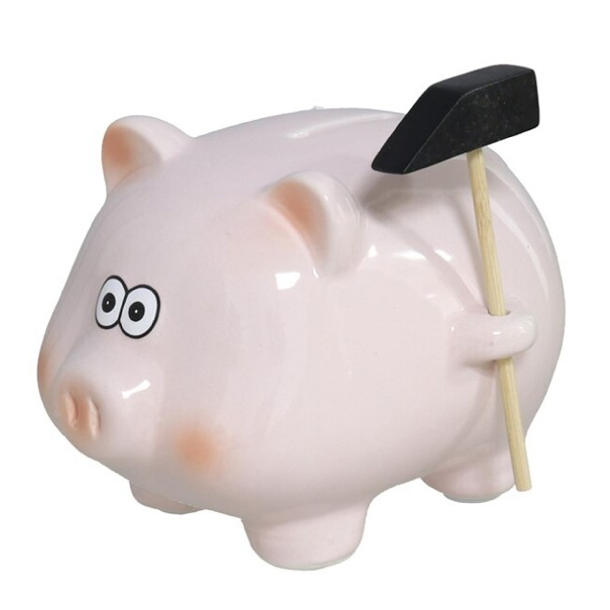 Gerimport Spaarpot varken met hamertje. Dit vrolijke varkentje maakt sparen een feestje! Het schattige roze varkentje komt met een klein hamertje, zodat kinderen hun spaargeld letterlijk “door kunnen breken” wanneer ze hun doel hebben bereikt. Gemaakt van keramiek, is dit varkentje een leuke aanvulling op elke kinderkamer, met een speelse uitstraling die kinderen helpt leren over sparen. Een leuk dierenthema, gecombineerd met een speelse activiteit, maakt het sparen extra spannend! Wie weet welke schatten er in dit varkentje verborgen liggen? Afmeting spaarpot: ca. 11 x 11 x 14 cm.