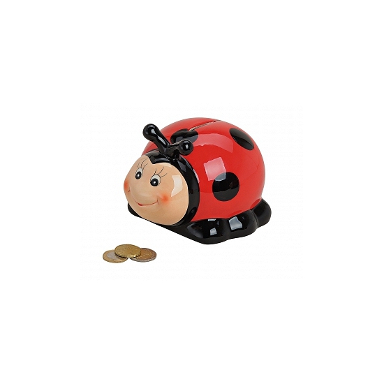 Spaarpot van een lieveheersbeestje van 14 cm. Een leuke dieren thema spaarpot gemaakt van keramiek. De Lieveheersbeestje spaarpot is circa 14 x 13 x 11 cm groot. Voor kinderen.