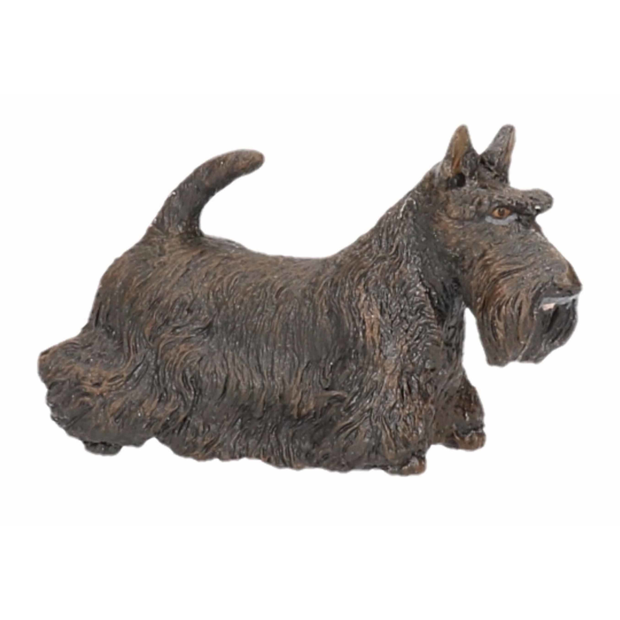 Plastic speelgoed figuur zwarte Schotse terrier 6 cm. Plastic speelgoed zwarte Schotse terrier met een formaat van ongeveer 6,5 x 2,5 x 4 cm.