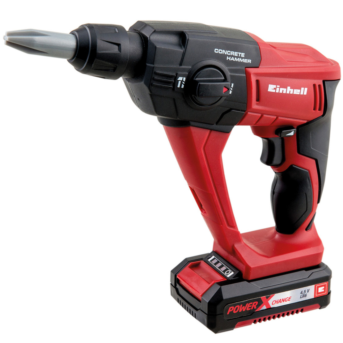 Kunststof speelgoed boorhamer rood 22 cm. Met deze speelgoed boorhamer met realistisch licht en geluid kan uw kind spelenderwijs leren omgaan met gereedschap. De boor is links- en rechtsomdraaiend, heeft een aan/uit knop en is voorzien van 4 verwisselbare boorkoppen. Batterijen: 3x AA (niet inbegrepen). Afmetingen: ca. 22 x 19,5 x 5,5 cm. Materiaal: kunststof. Kleur: rood/zwart/grijs. Niet geschikt voor kinderen jonger dan 3 jaar in verband met kleine onderdelen. Boor/boorhamer speelgoed gereedschap voor kinderen.
