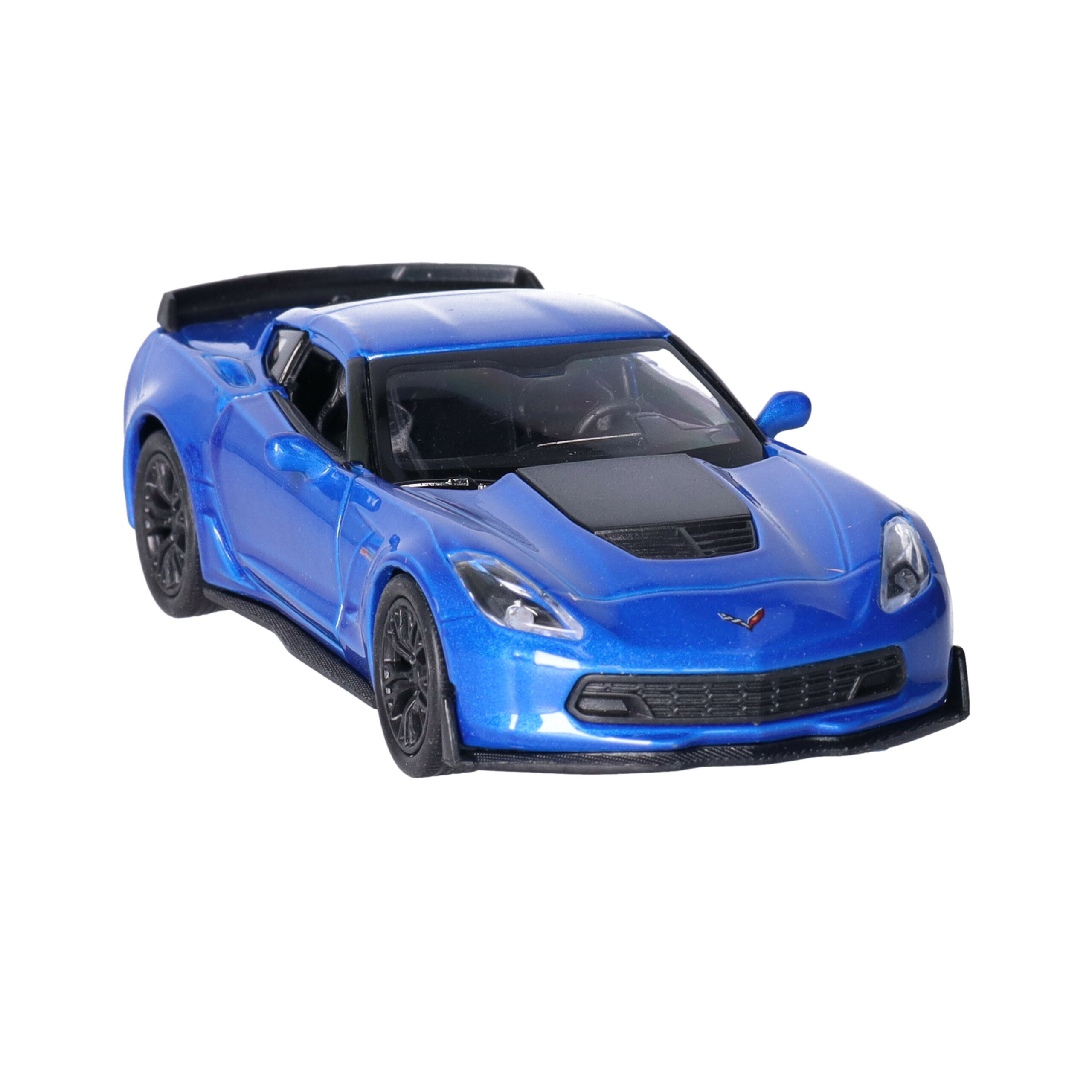 Chevrolet speelgoedautootje van model Corvette. De speelgoedauto is ongeveer 11 x 4 cm en is in de kleur blauw. De die-cast auto is gemaakt van metaal en plastic. Leuk als decoratie of om uren mee te spelen. Deuren kunnen open. Schaalmodellen om te sparen.