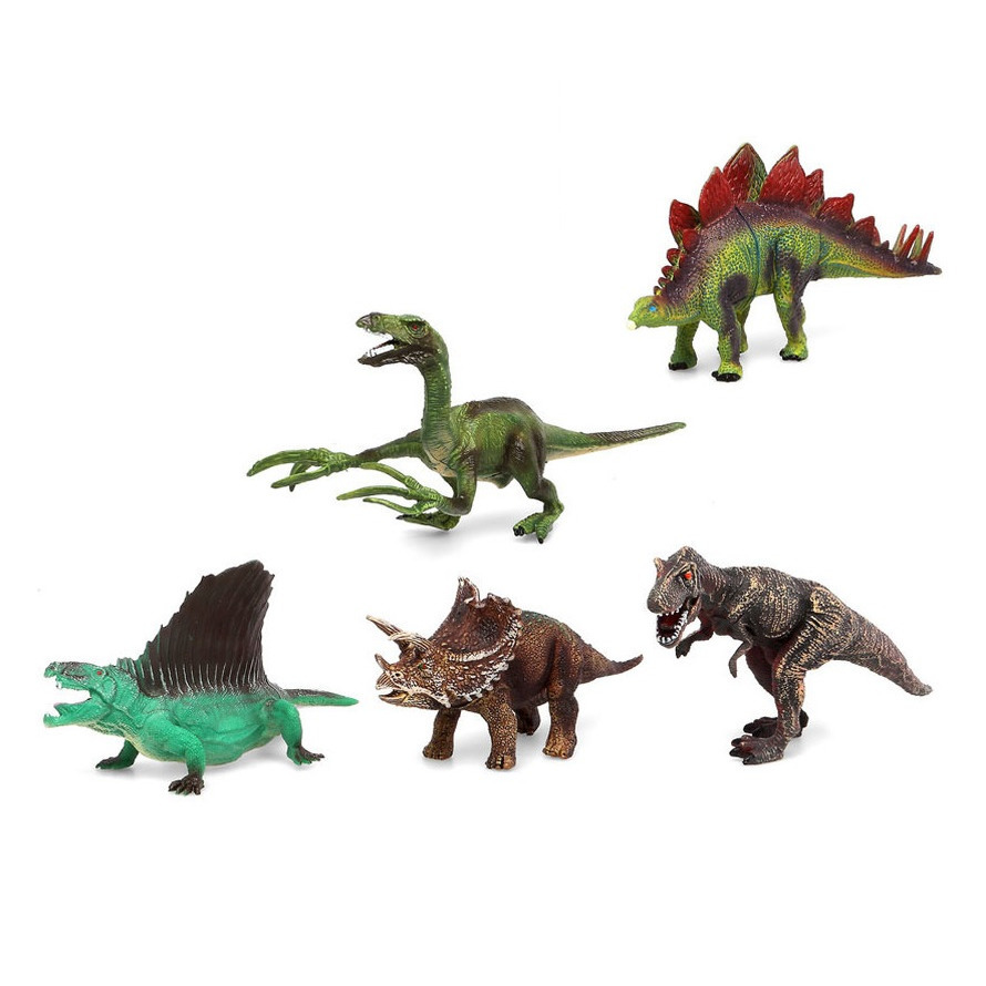 Speelgoed dino dieren figuren 5x stuks dinosaurussen. Materiaal: kunststof. Formaat van de Dino’s variëren van ca. 12 x 8 cm / 15 x 11 cm / 17 x 7 cm.