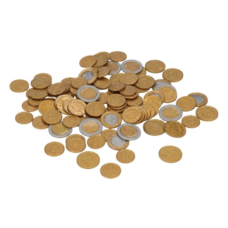 Speelgoed euro munten. Het zakje speelgoed euro munten bevat 100 muntstukken welk varieert van 2 euro’s tot 5 vijf cent. De munten zijn gemaakt van kunststof. Dit speelgoed geld is leuk voor een rollenspel winkeltje of spelenderwijs leren met geld.