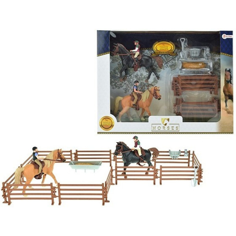 Speelgoed paarden figuur set twee paarden met ruiters.
