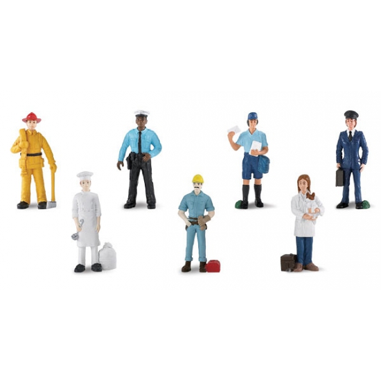 Speelgoed poppetjes beroepen. Plastic speelgoedset met 7x poppetjes in beroepskleding. De poppetjes hebben een formaat van ongeveer 5 cm.