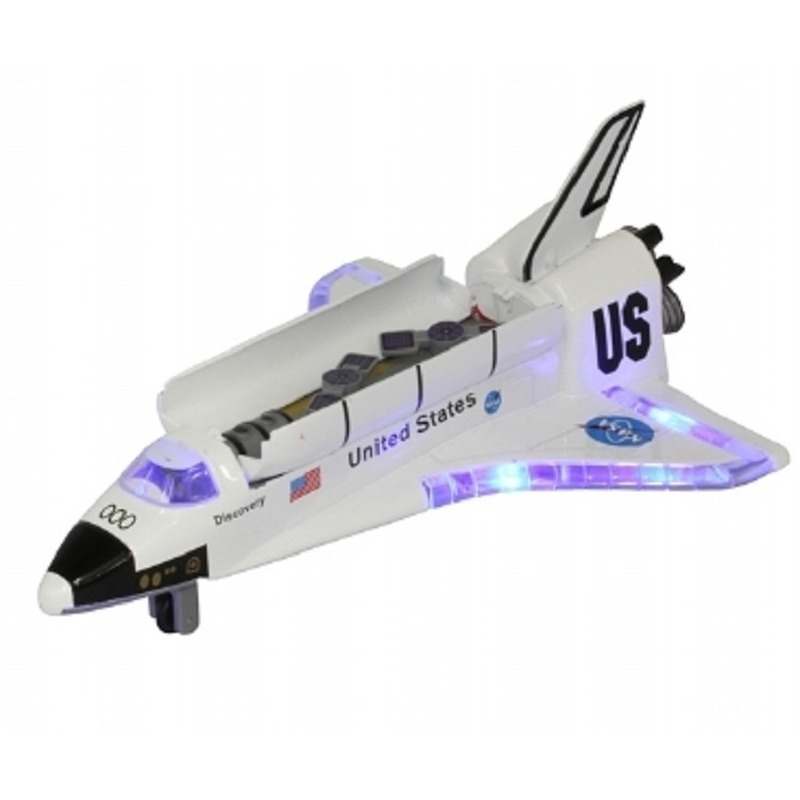 Space shuttle met licht en geluid 19 cm speelgoed. Deze raket is goed voor uren speelplezier. In de vleugels zitten lichtjes en de raket kan geluid maken.