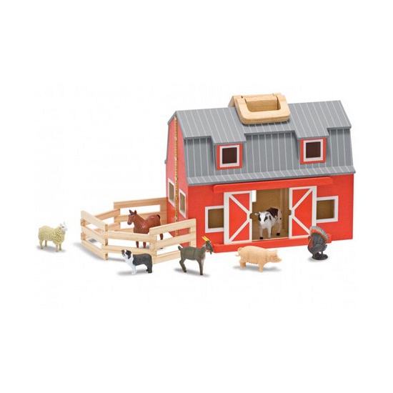 Houten speelgoed stal inklapbaar met dieren. Houten stal welke je open en dicht kunt klappen, met houten handvat. Inclusief hekwerk en verschillende dieren. Ongeveer 34 x 27 x 18 cm groot. Boerderij speelgoed voor kinderen.