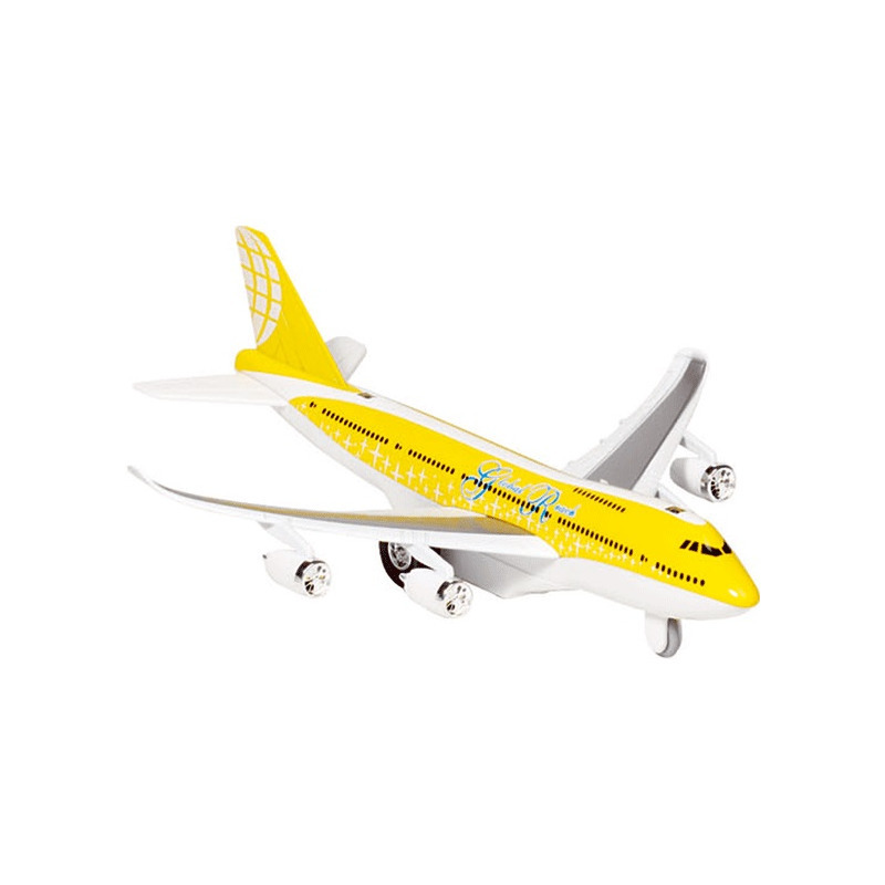 Speelgoed vliegtuigje met licht en geluid in de hoofdkleur geel. Leuk metalen vliegtuigje (ongeveer 19 cm) met pull-back motor en licht en geluid. Voor urenlang kinder speelplezier. Maak je eigen luchthaven en verhaal.