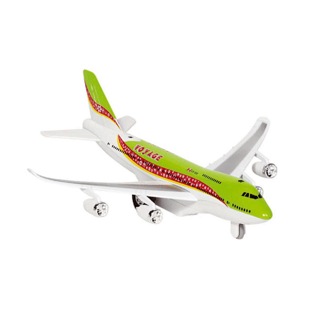 Speelgoed vliegtuigje met licht en geluid in de hoofdkleur groen. Leuk metalen vliegtuigje (ongeveer 19 cm) met pull-back motor en licht en geluid. Voor urenlang kinder speelplezier. Maak je eigen luchthaven en verhaal.