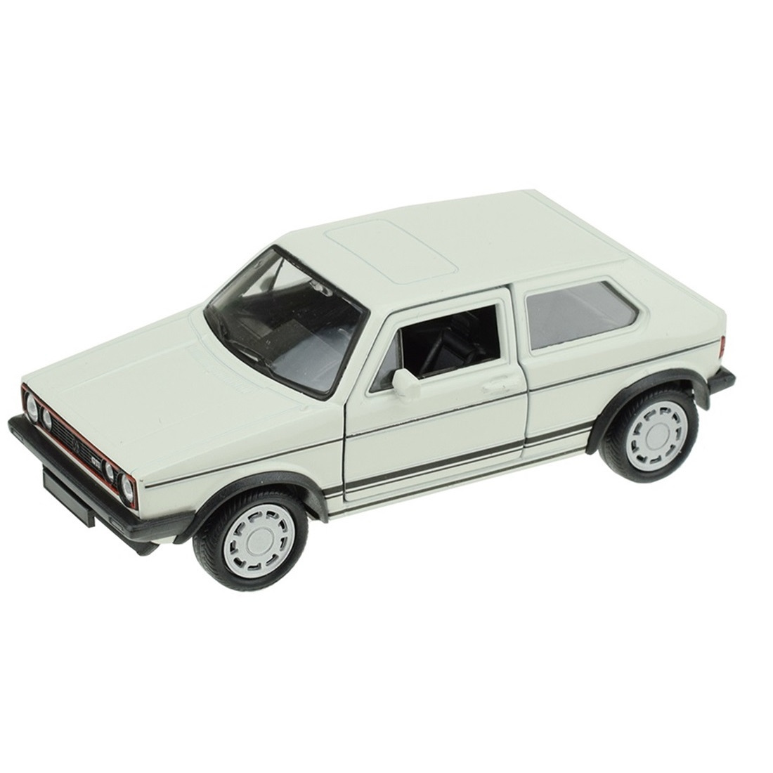 Volkswagen speelgoedautootje van model Golf 1 GTI. De speelgoedauto is ongeveer 13 x 5 cm en is in de kleur wit. De die-cast auto is gemaakt van metaal en plastic. Leuk als decoratie of om uren mee te spelen. Deuren kunnen open. Schaalmodellen om te sparen.