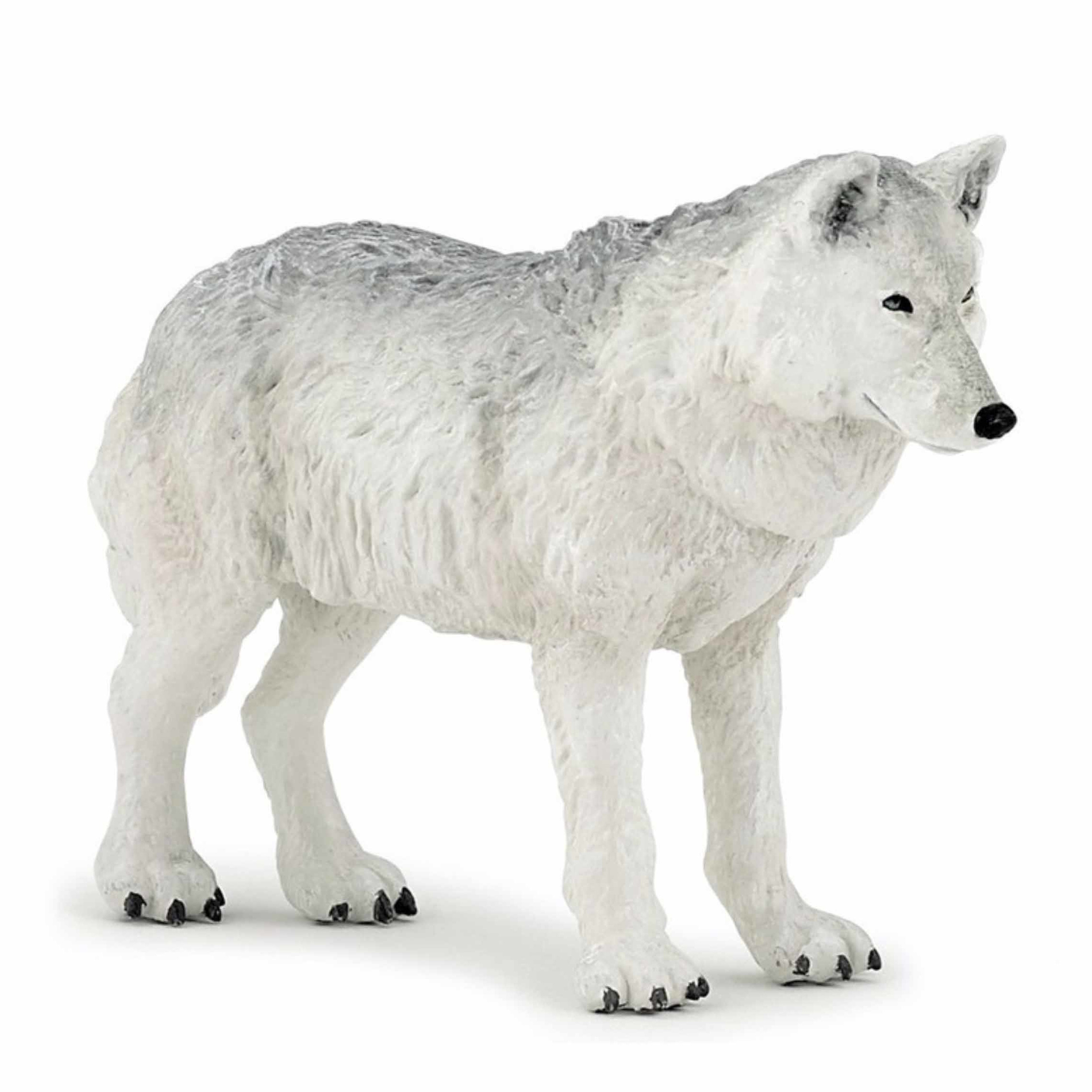 Speelgoed diertje van een Witte wolf. Breng de magie van de wildernis tot leven met deze prachtig gedetailleerde witte wolf van Papo! Dit realistische speelfiguur is met de hand geschilderd en gemaakt van hoogwaardig kunststof, perfect voor avontuurlijk spel en verzamelingen.