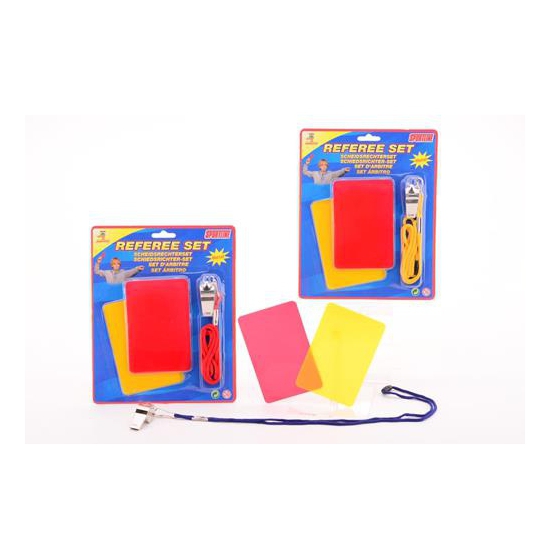 Sportline scheidsrechter speelset: Deze complete set bevat een rode en een gele kaart voor het geven van waarschuwingen en een ijzeren fluit aan een stevig koord voor duidelijke signalen. Ideaal voor elke scheidsrechter die zijn of haar taken serieus neemt en het spel eerlijk wil laten verlopen.
