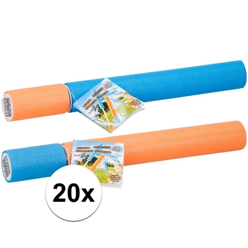 20 stuks waterpistool van foam 33 cm. Beleef urenlang waterpret met dit foam waterpistool van 33 cm! Makkelijk te vullen onder de kraan en eenvoudig in gebruik: trek de achterkant naar achter, duw hem met kracht terug en geniet van een krachtige waterstraal die tot wel 6 meter ver kan spuiten.