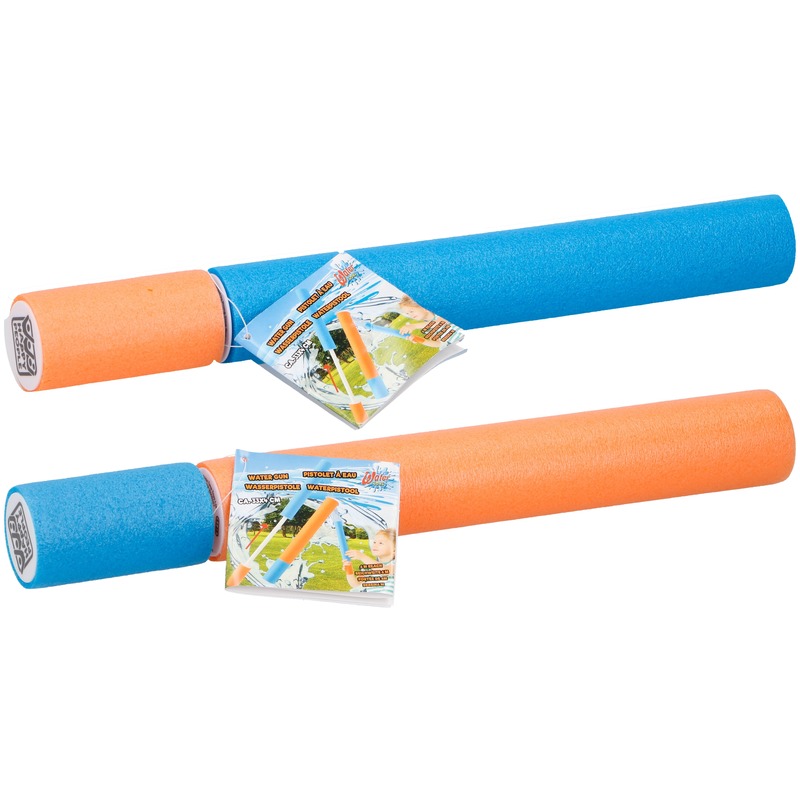 Waterpistool van foam 33 cm. Beleef urenlang waterpret met dit foam waterpistool van 33 cm! Makkelijk te vullen onder de kraan en eenvoudig in gebruik: trek de achterkant naar achter, duw hem met kracht terug en geniet van een krachtige waterstraal die tot wel 6 meter ver kan spuiten.
