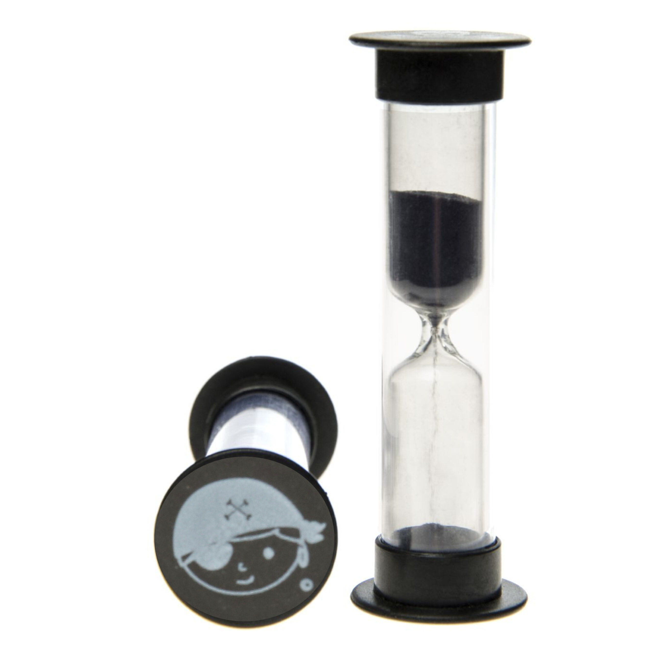 Tandenpoets zandloper – piraat – 3 minuten – zwart zand – badkamer timer. Leuke piraat tandenpoets zandloper om kinderen te helpen lang genoeg hun tanden te poetsen. Gevuld met zwart zand en ontworpen voor een tijdsduur van 3 minuten. Ideaal voor in de badkamer en maakt tandenpoetsen leuker!
