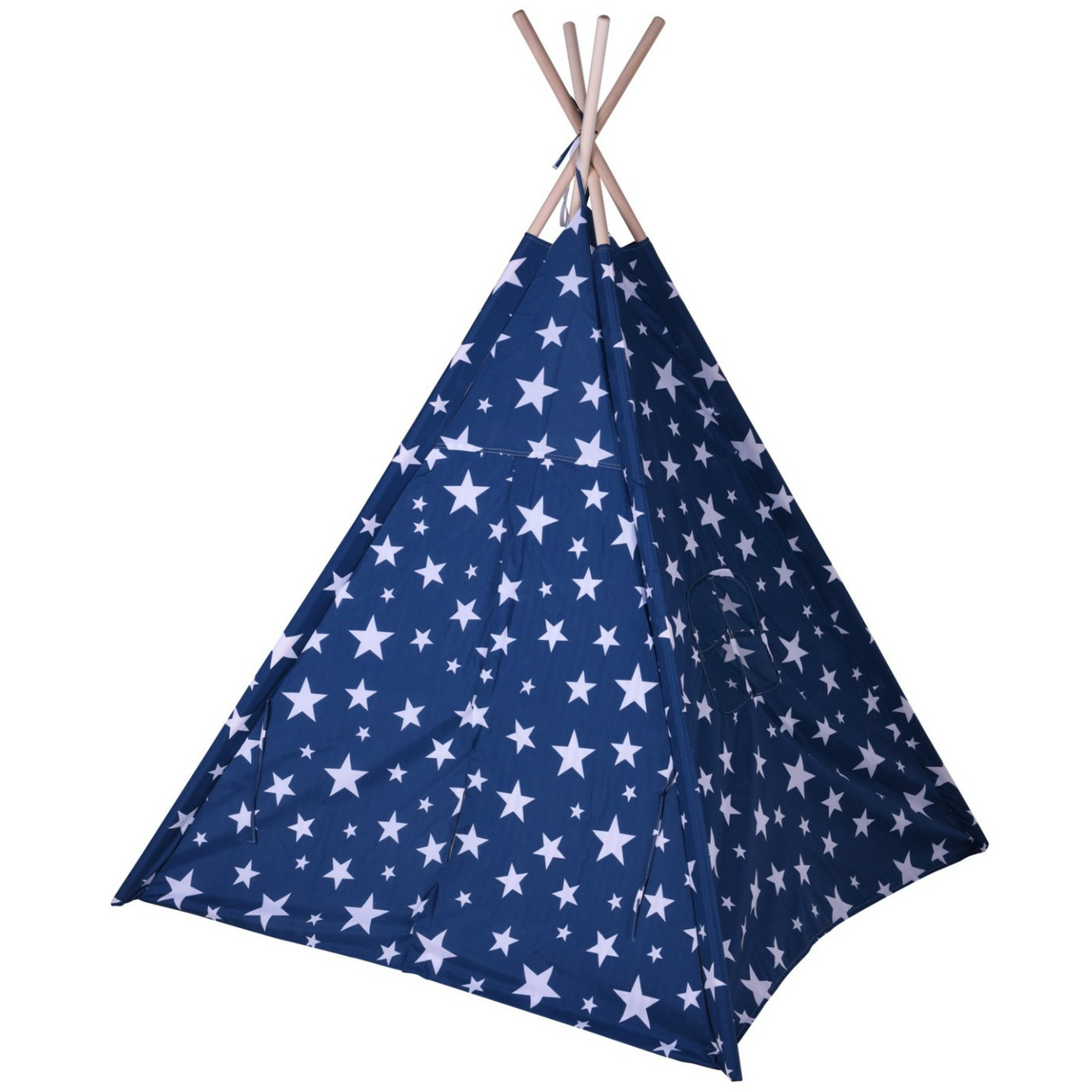 Een tipitent voor kinderen waar ze een ultieme beleving en uren lang speelplezier kunnen ervaren met hun vrienden. De tent kan aan de voorzijde worden afgesloten door middel van een ritssluiting, ook is er ruimte voor een zijraam waardoor het een open gevoel geeft. Bovendien zet je de tent eenvoudig in elkaar met de vier houten stokken. Geschikt voor binnen en buiten en wordt geleverd in een handige tas. Materiaal: Polyester. Afmetingen: 103 x 103 x 160 cm. Kleur: navy blauw.