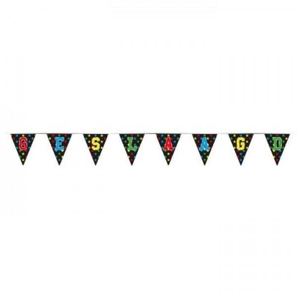 Heb je een goede Cito-score, middelbare schooldiploma of rijbewijs gehaald? Versier de kamer dan met deze leuke Vlaggenlijn geslaagd! Op de vlaggetjes staat steeds één letter van het woord geslaagd met feestelijke sterretjes. Zo voelt…