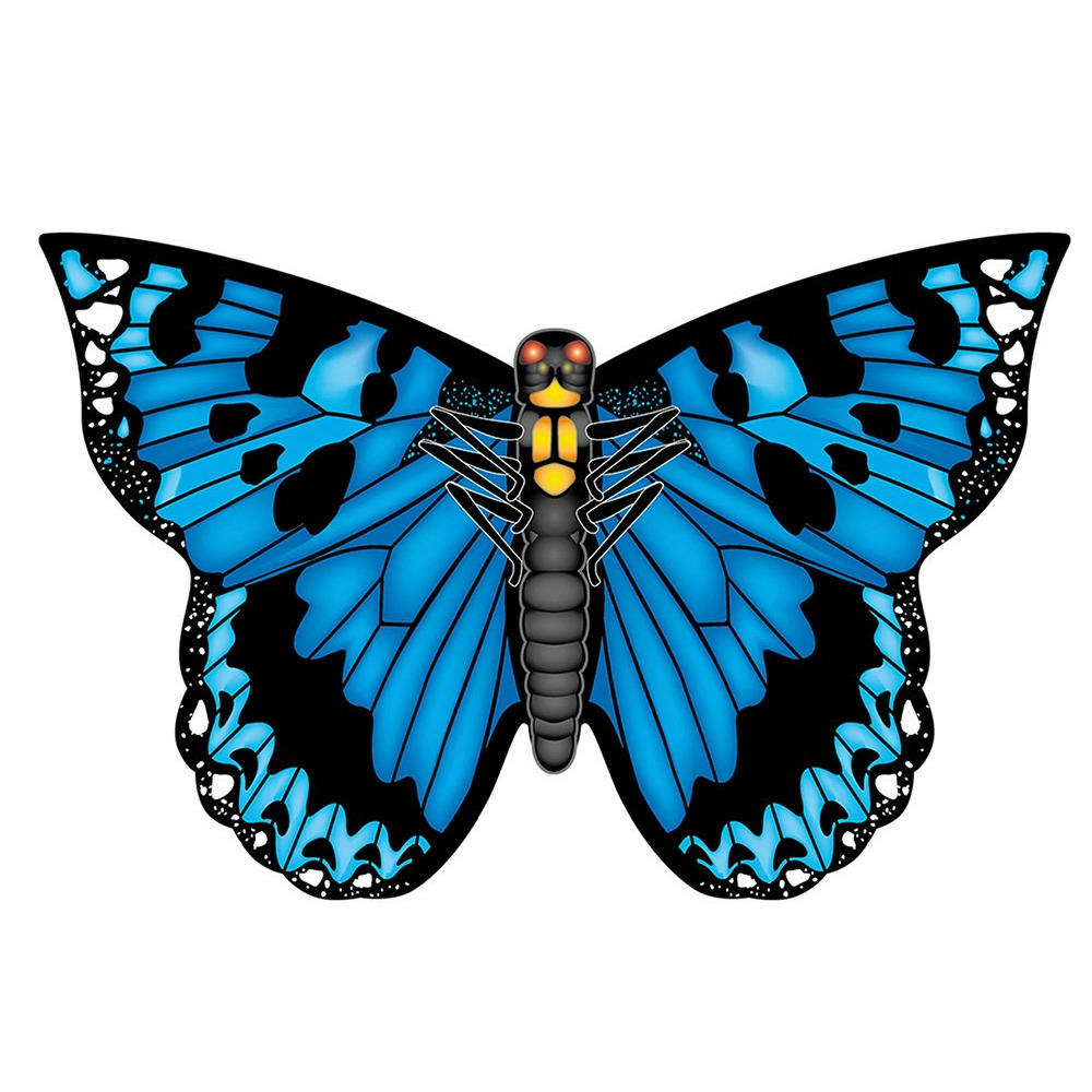 Vlinder vlieger blauw 71 cm breed/wijd. Vrolijk gekleurde vlieger in de vorm van een Blauwe vlinder. De vlieger is gemaakt van nylon en is geschikt voor kinderen vanaf 8 jaar.