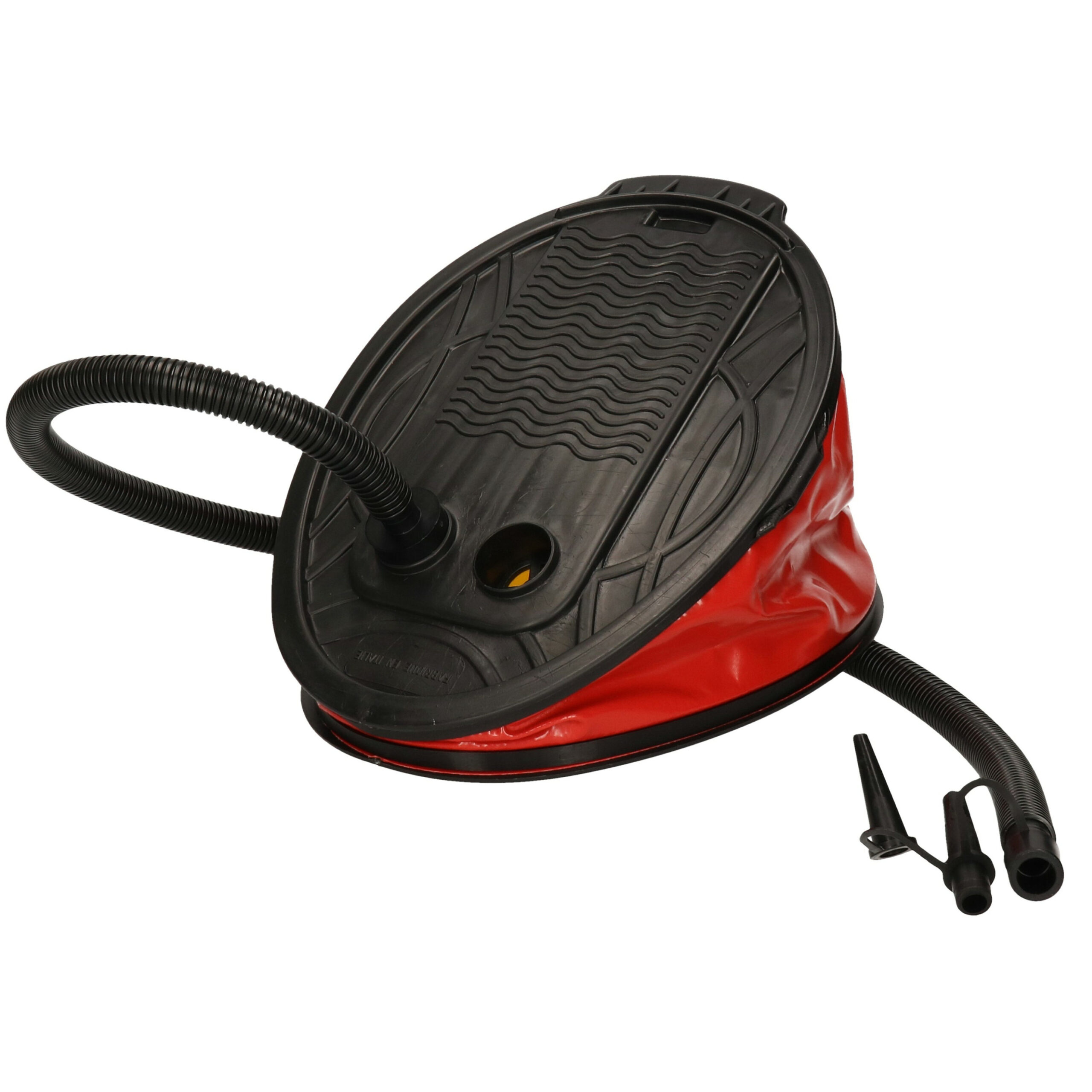 Voetpomp 5000 CC. Met deze voetpomp kunt u gemakkelijk meerdere soorten opblaas artikelen opblazen. Van luchtbed tot zwemband. De pomp heeft diverse formaten opzet stukjes. Afmeting 25 x 31 cm.
