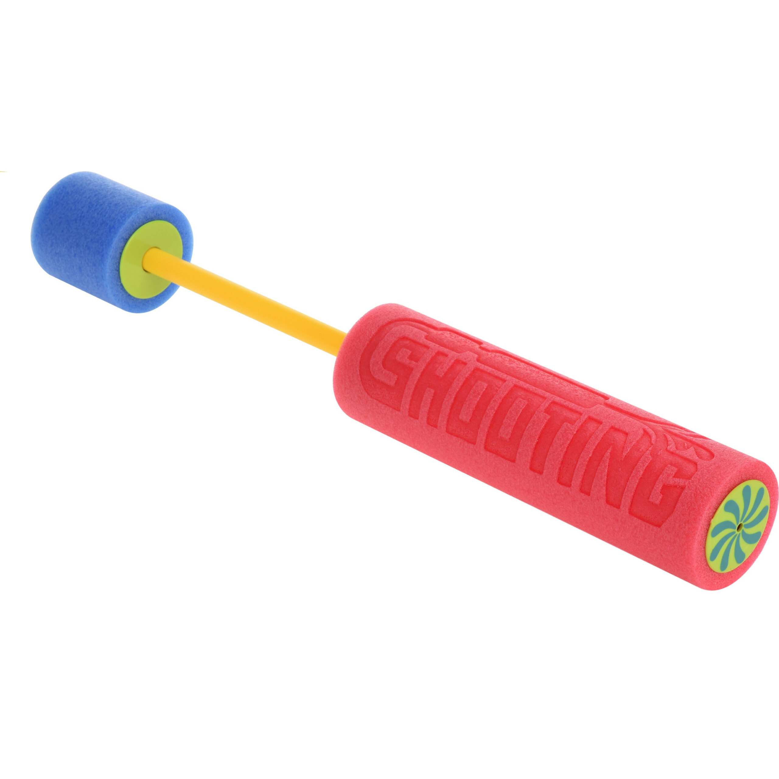 Waterpistool spuit van foam. Dit waterpistool vult u onder de kraan met water. Hierna haalt u de achterkant van het foam pistool naar achter, met kracht duwt u deze terug. Hierdoor krijgt u een krachtige waterstraal die wel meters ver kan spuiten. Formaat: ongeveer 32 cm. U ontvangt een willekeurige kleur.