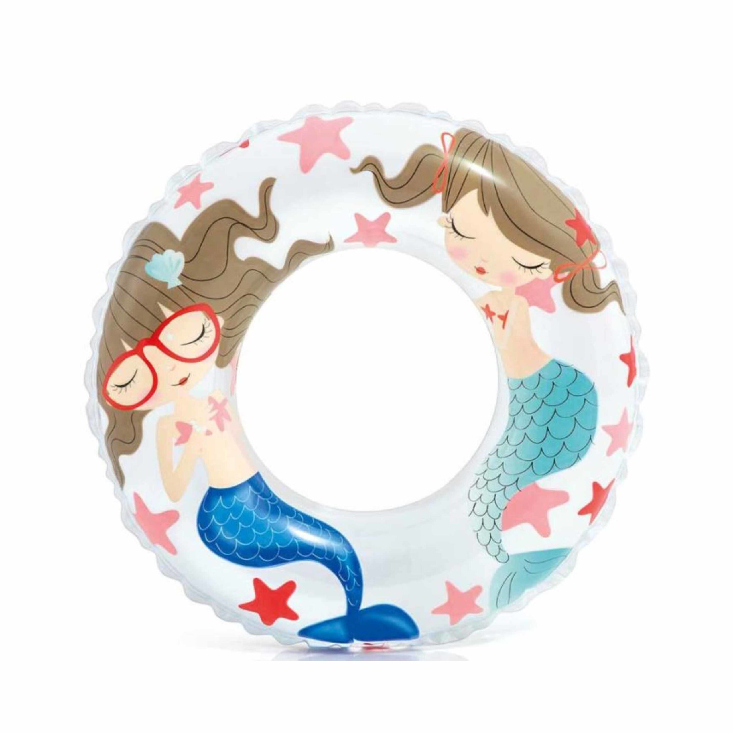 Laat je kind genieten van zomerse avonturen met deze opblaasbare zwemband met een betoverend zeemeerminnenthema! Deze witte zwemband, gedecoreerd met kleurrijke zeemeerminnen en zeesterren, is perfect voor kinderen van 6 tot 10 jaar. Met een diameter van ongeveer 61 cm biedt hij de ideale grootte voor plezier en veiligheid in het water. Gemaakt van duurzaam vinyl, garandeert deze zwemband langdurig gebruik en uren waterplezier. Een must-have voor elk kind dat houdt van fantasierijke wateravonturen!